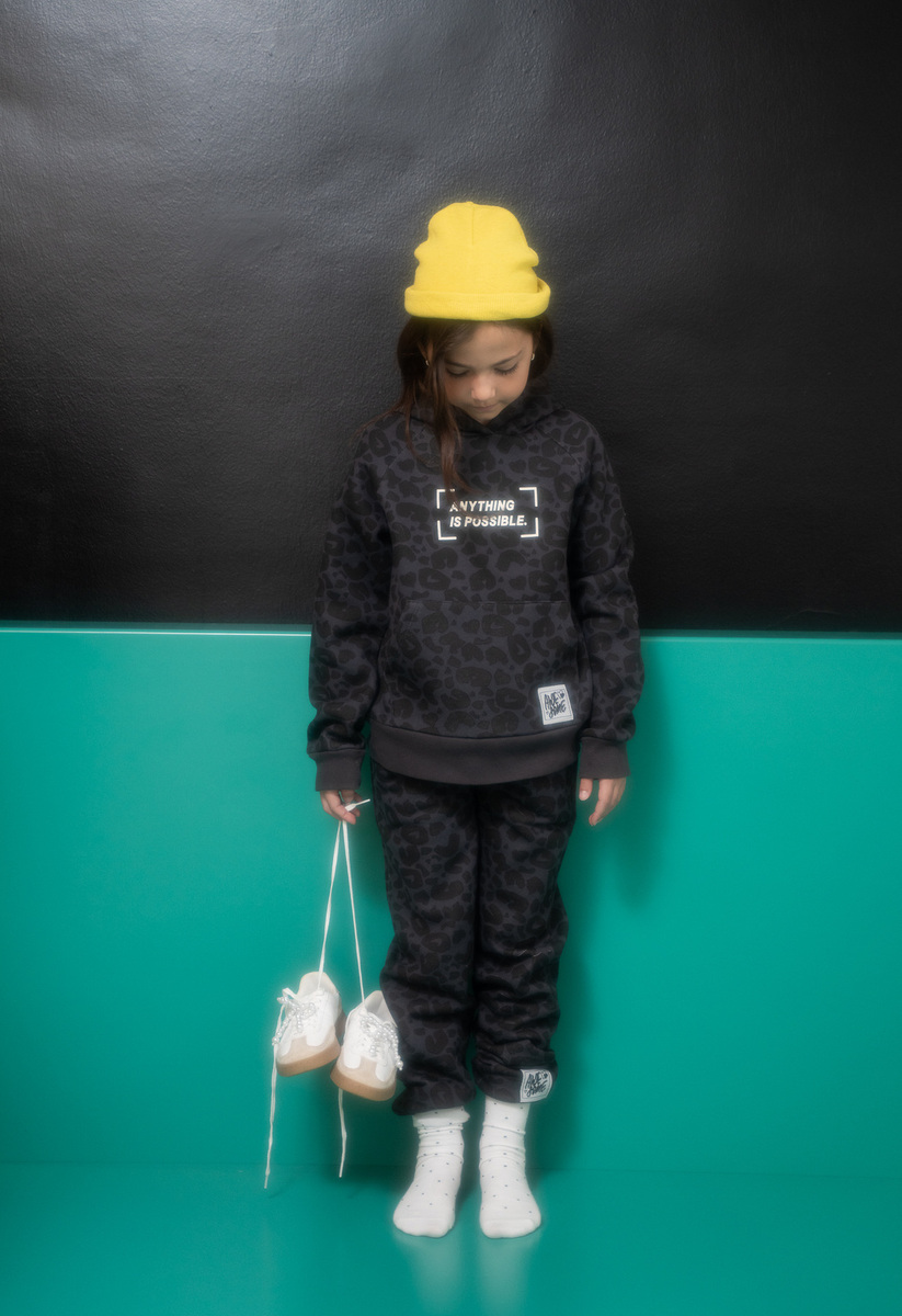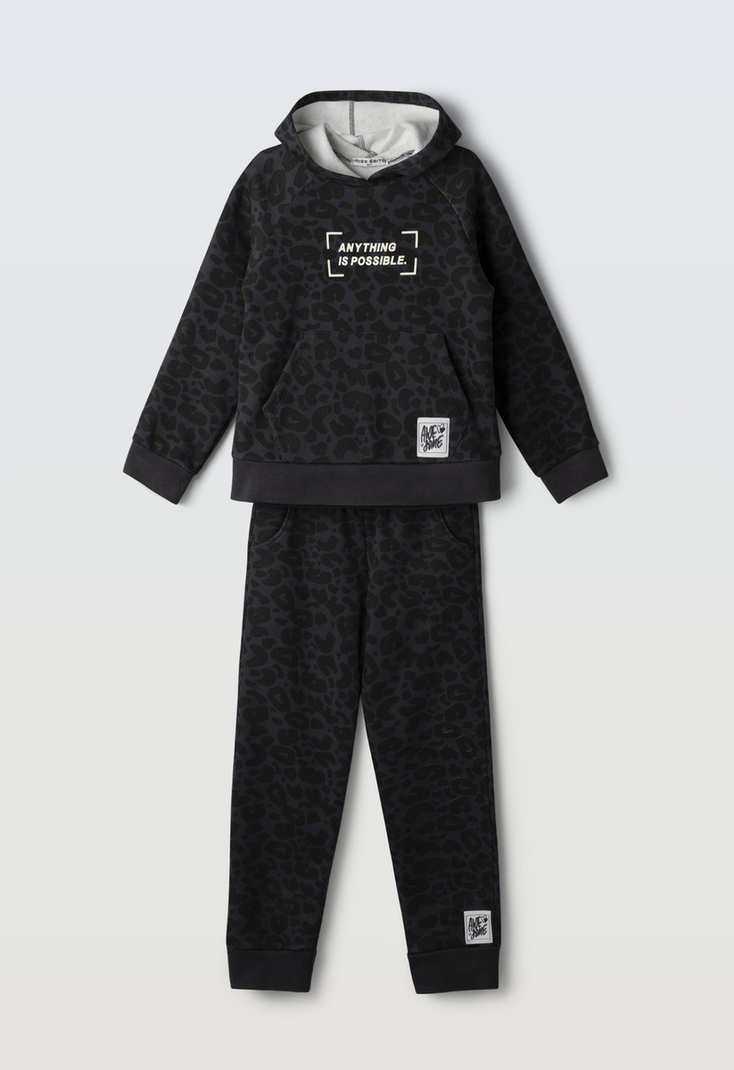 Σετ φόρμας ΕΒΙΤΑ, μπλούζα φούτερ με leopar τύπωμα και παντελόνι φούτερ με λάστιχο στη μέση σε χρώμα γκρι-μαύρο.
