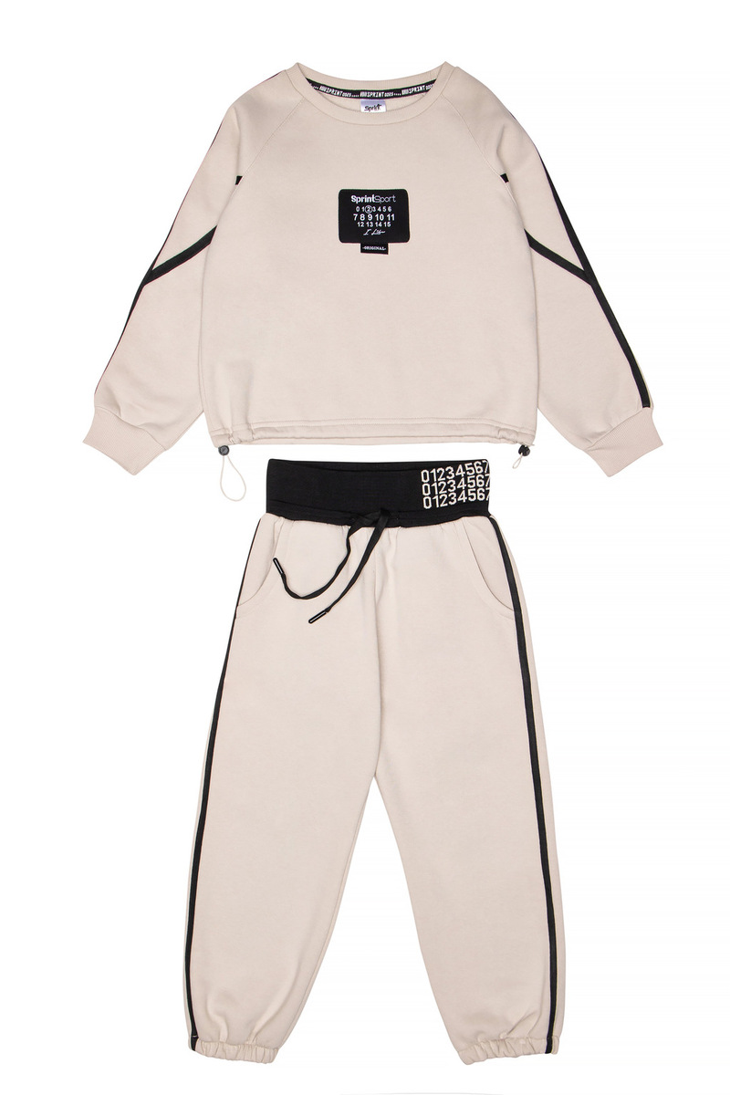 Σετ φόρμας SPRINT, μπλούζα φούτερ με λαιμόκοψη και παντελόνι φούτερ με φαρδύ λάστιχο και ανεξάρτητο εσωτερικό κορδόνι στη μέση σε χρώμα εκρού.