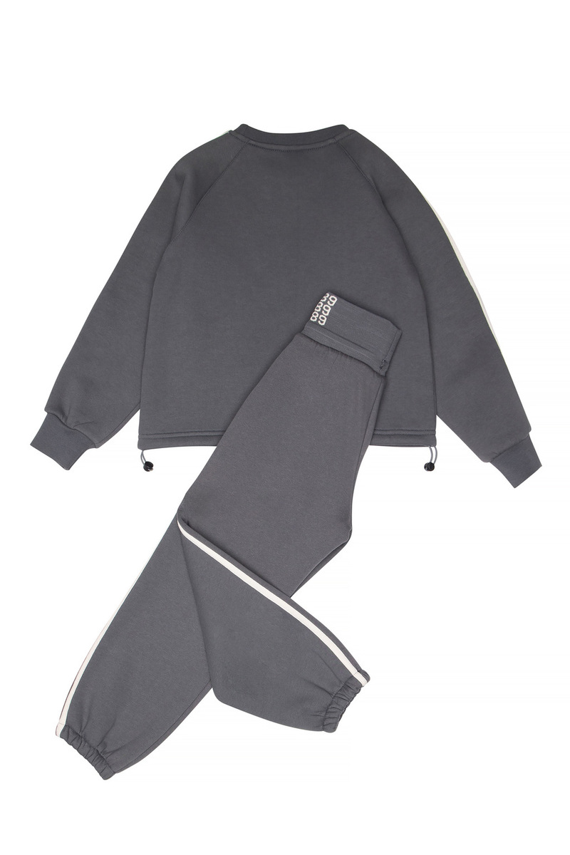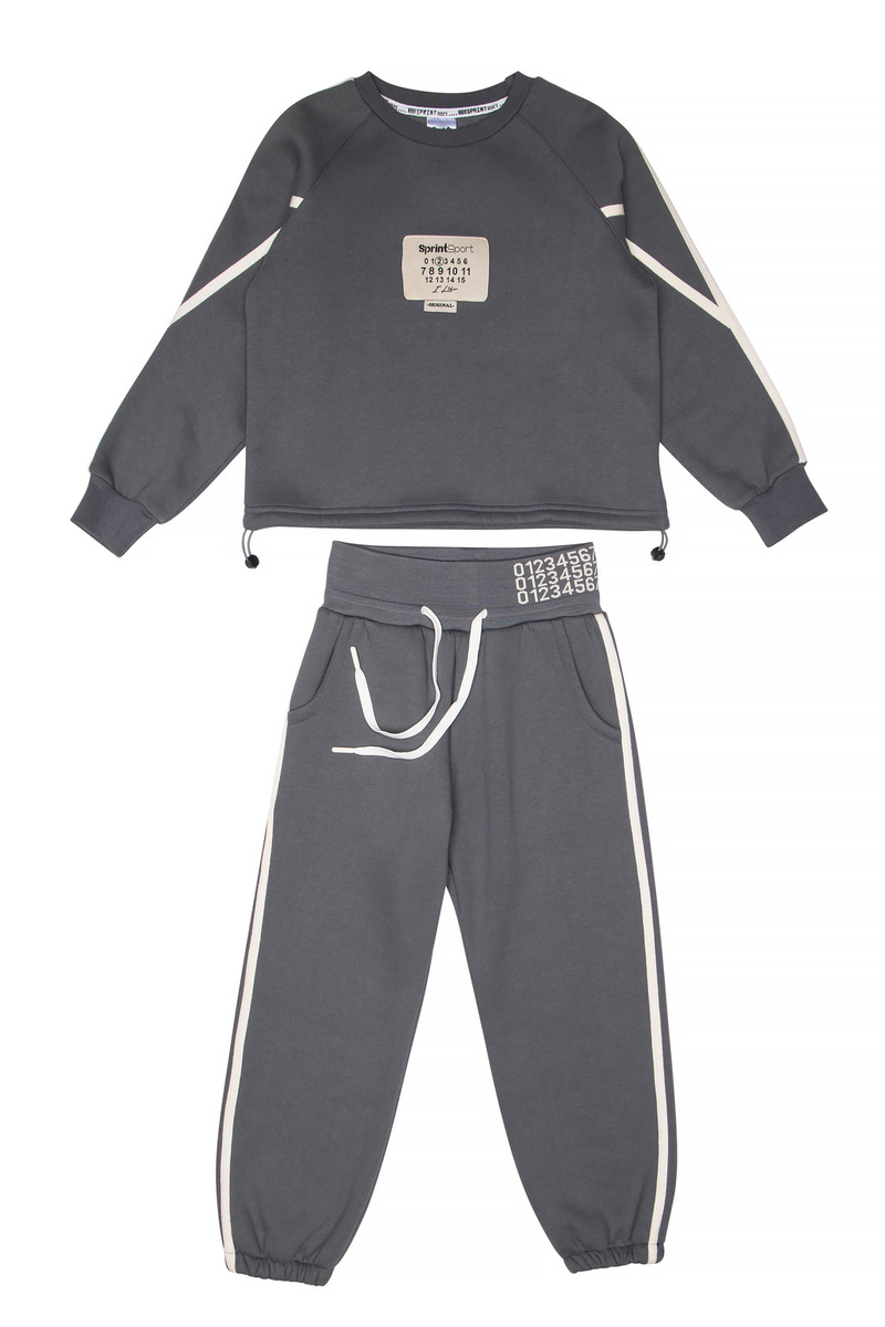 Σετ φόρμας SPRINT, μπλούζα φούτερ με λαιμόκοψη και παντελόνι φούτερ με φαρδύ λάστιχο και ανεξάρτητο εσωτερικό κορδόνι στη μέση σε χρώμα ανθρακί.
