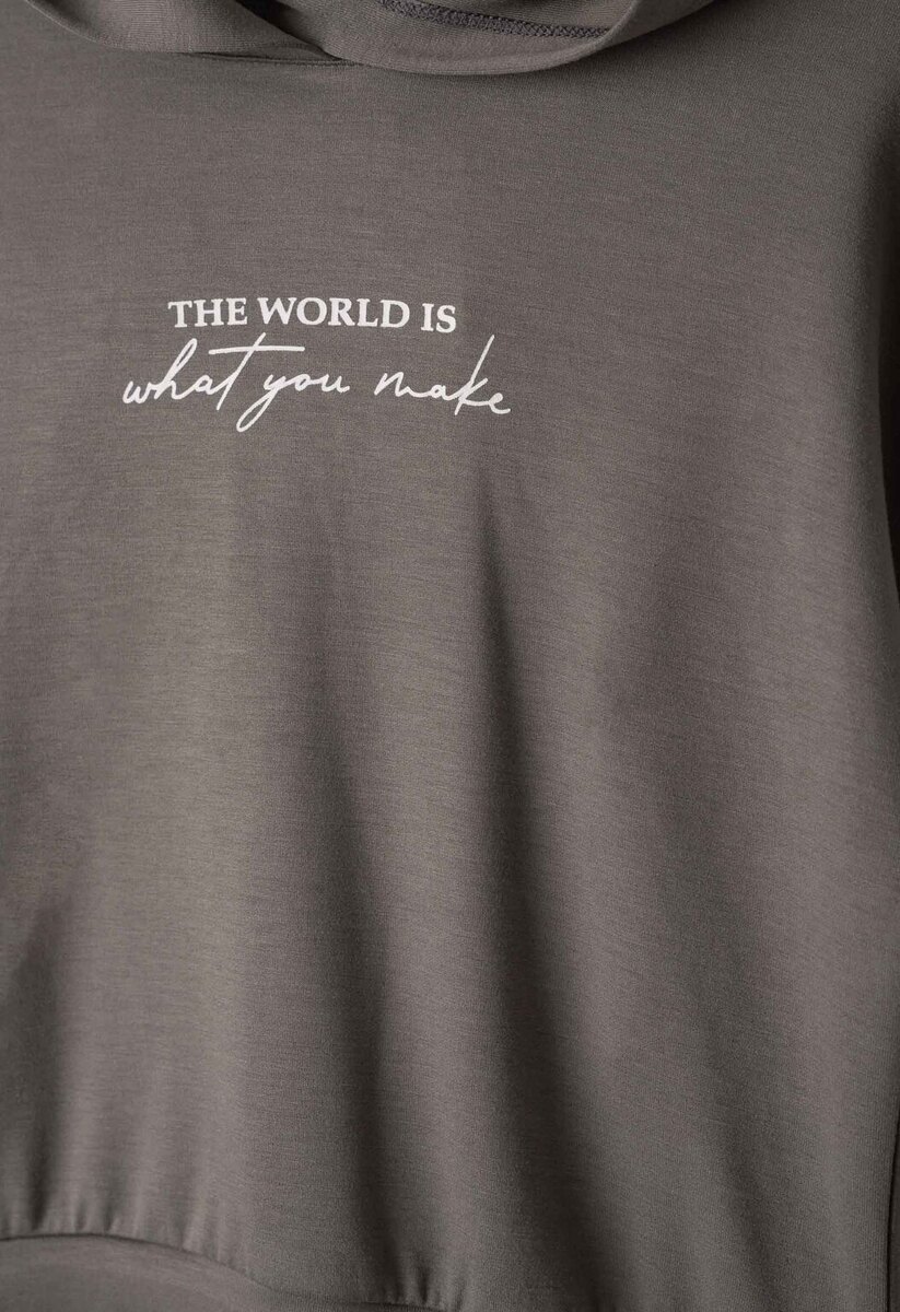 Σετ φόρμα ΕΒΙΤΑ, μπλούζα φούτερ με κουκούλα και παντελόνι φούτερ με λάστιχο στη μέση σε γκρι - ανθρακί χρώμα.