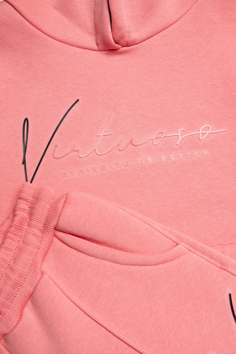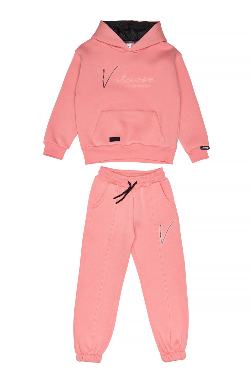 Σετ φόρμας SPRINT, μπλούζα φούτερ με ενσωματωμένη αδιάβροχη κουκούλα και παντελόνι φούτερ με λάστιχο και ανεξάρτητο εσωτερικό κορδόνι στη μέση σε χρώμα ροζ.
