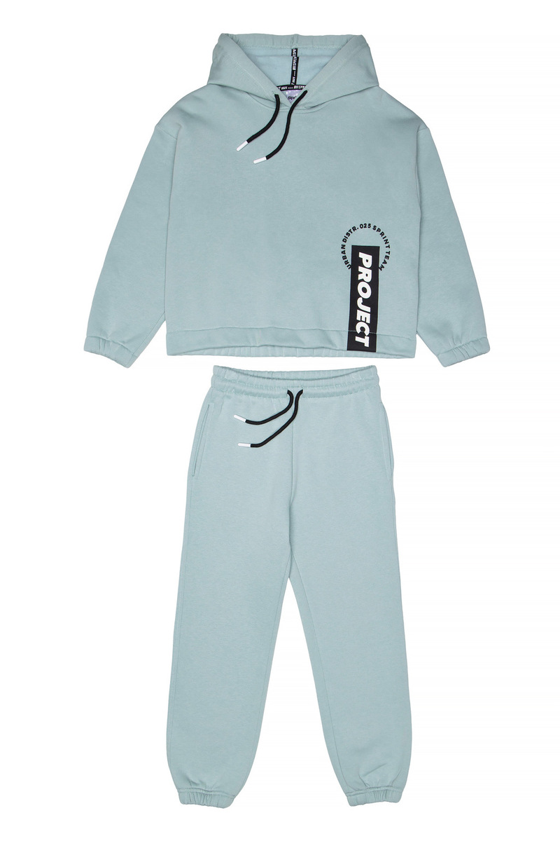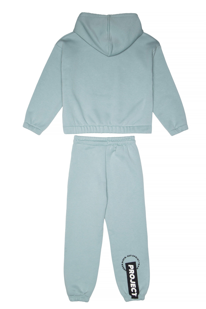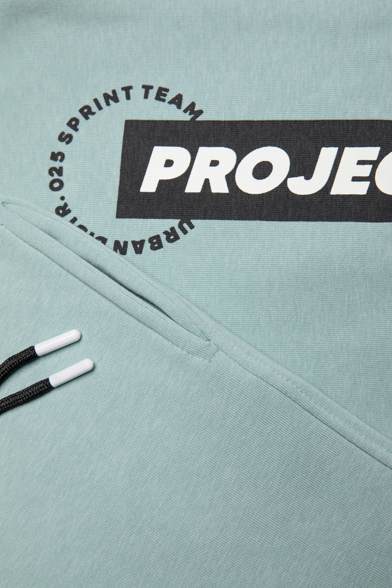 Σετ φόρμας SPRINT σε χρώμα μέντα, μπλούζα φούτερ με ενσωματωμένη κουκούλα και παντελόνι φούτερ με λάστιχο και ανεξάρτητο εσωτερικό κορδόνι στη μέση.