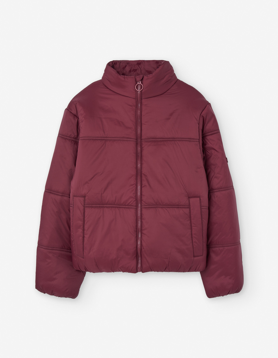 Μπουφάν LOSAN σε χρώμα μπορντώ με ψηλό λαιμό, κούμπωμα με φερμουάρ, δύο εσωτερικές τσέπες στο πλάι, λάστιχο στα μανίκια και το τελείωμα.
