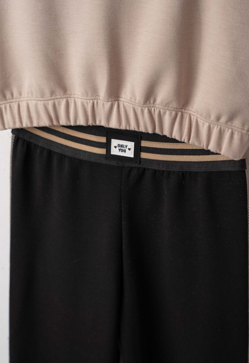 Σετ κολάν ΕΒΙΤΑ με στρογγυλή λαιμόκοψη σε μπεζ με μαύρο χρώμα.