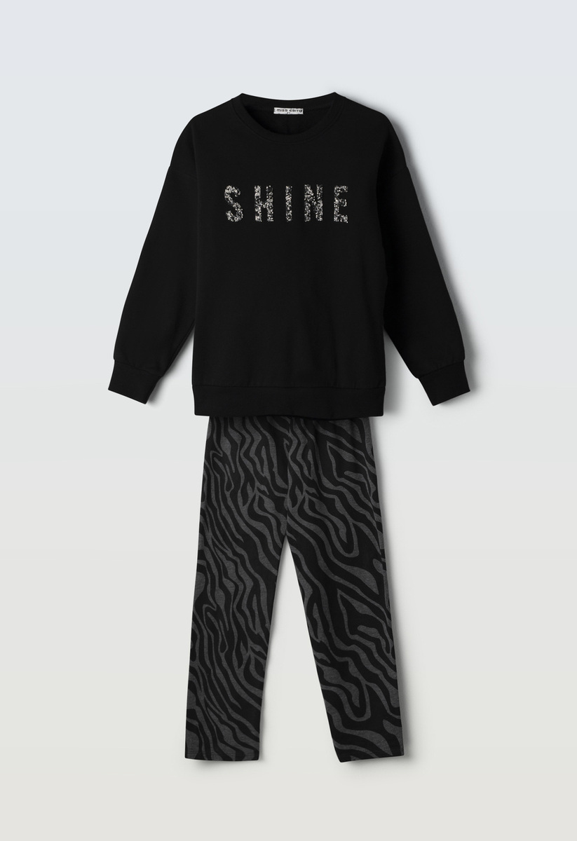Σετ κολάν ΕΒΙΤΑ, μπλούζα φούτερ με στρογγυλή λαιμόκοψη και κολάν με λάστιχο στη μέση σε μαύρο χρώμα.