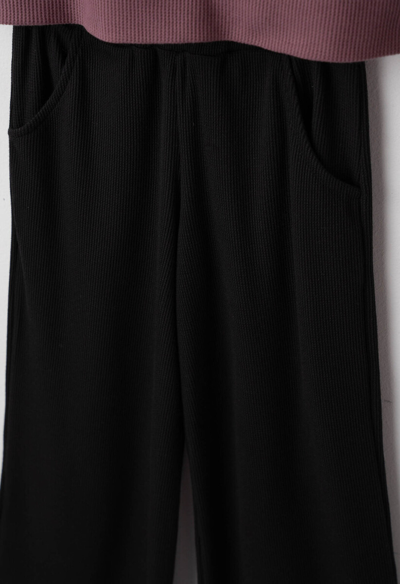 Σετ ΕΒΙΤΑ, μπλούζα με στρογγυλή λαιμόκοψη σε ροζ σκούρο χρώμα και παντελόνα με λάστιχο στη μέση σε χρώμα μαύρο.
