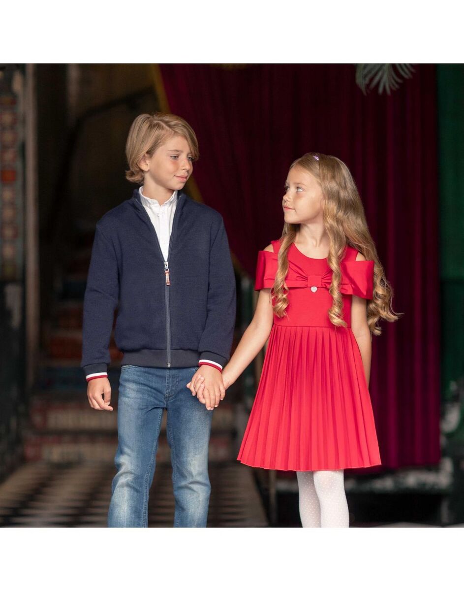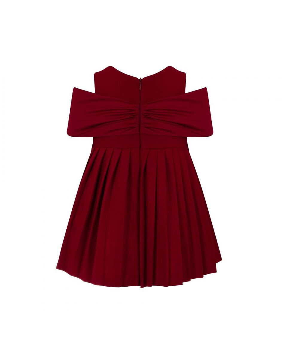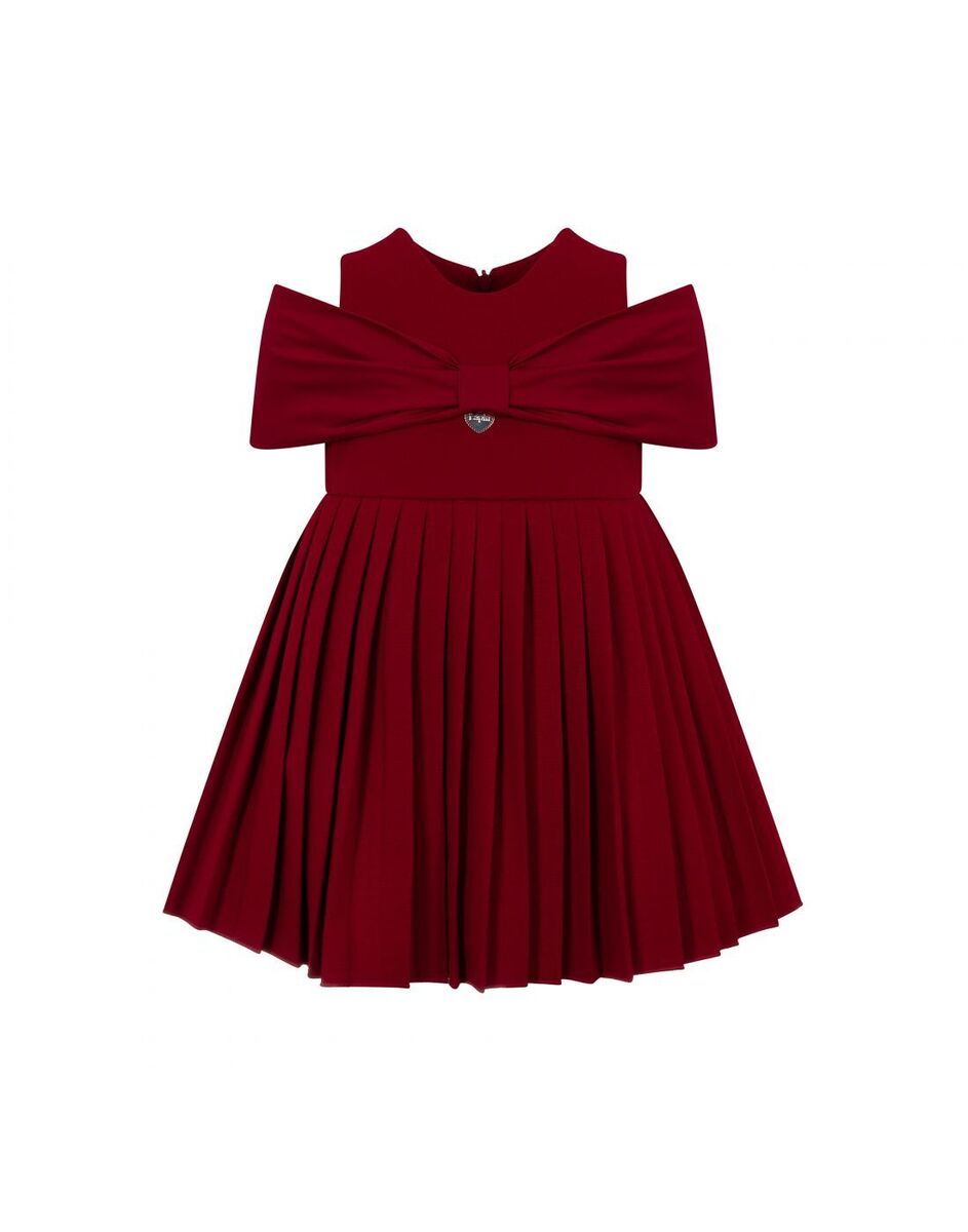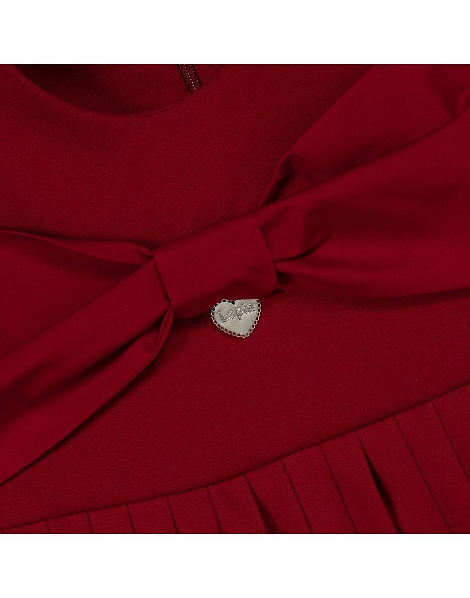 Φόρεμα LAPIN HOUSE σε κόκκινο χρώμα με σταθερό φιόγκο στο στήθος, κούμπωμα στην πλάτη με φερμουάρ και πλισέ τελείωμα.