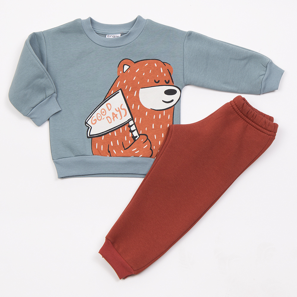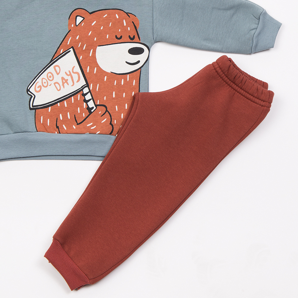 Σετ φόρμας TRAX, μπλούζα φούτερ με στρογγυλή λαιμόκοψη σε μέντα χρώμα και παντελόνι φούτερ με λάστιχο στη μέση σε χρώμα καφέ.