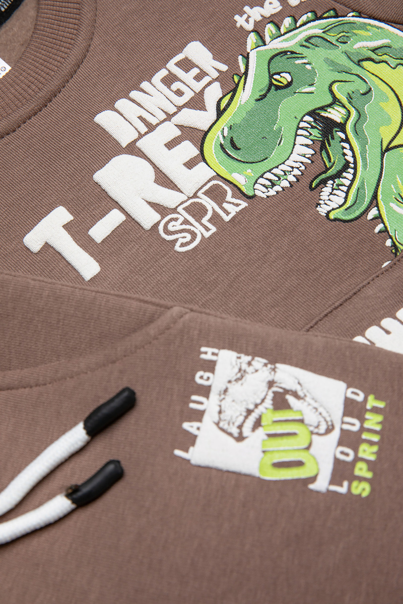Σετ φόρμα SPRINT, μπλούζα φούτερ με στρογγυλή λαιμόκοψη και παντελόνι φούτερ με λάστιχο και ανεξάρτητο εσωτερικό κορδόνι στη μέση σε χρώμα καφέ.