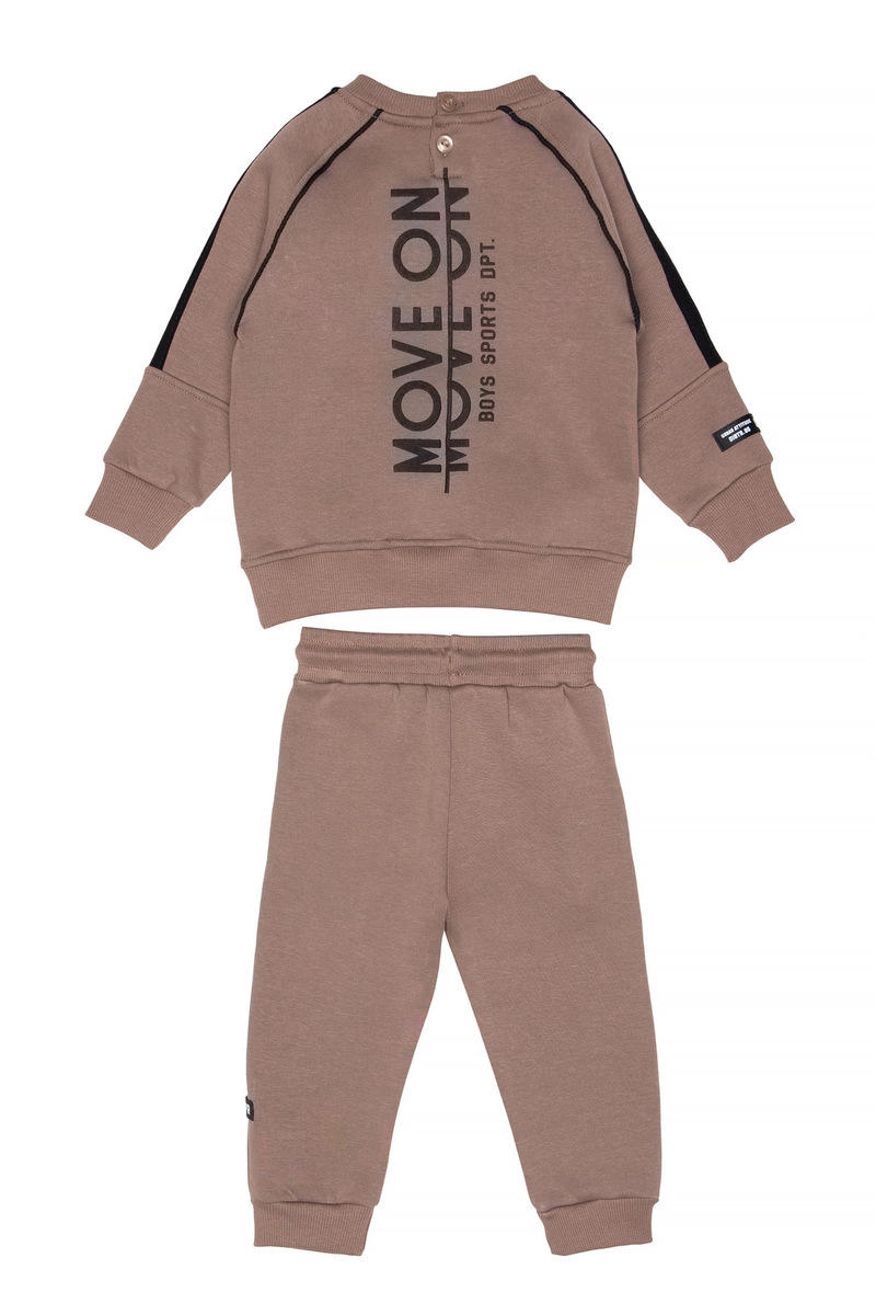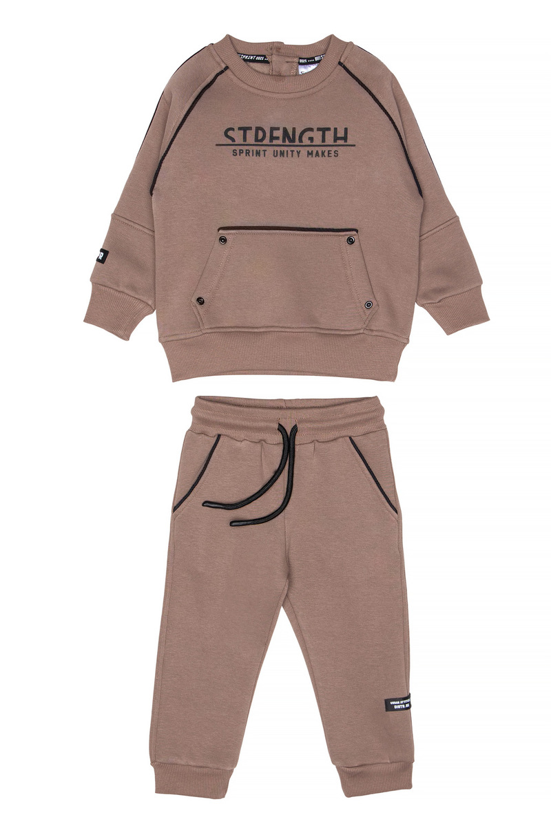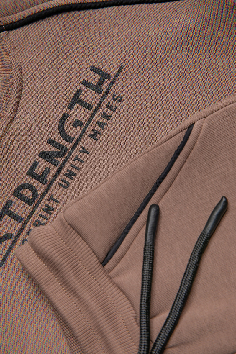 Σετ φόρμα SPRINT, μπλούζα φούτερ με στρογγυλή λαιμόκοψη και παντελόνι φούτερ με λάστιχο και ανεξάρτητο εσωτερικό κορδόνι στη μέση σε χρώμα καφέ.