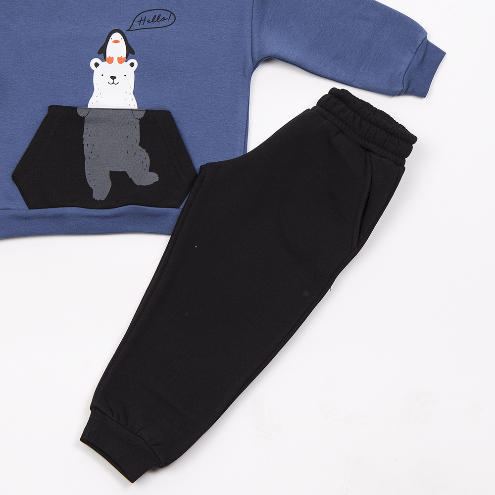 Σετ φόρμας TRAX, μπλούζα φούτερ με στρογγυλή λαιμόκοψη σε μπλε χρώμα και παντελόνι φούτερ με λάστιχο στη μέση και το τελείωμα σε χρώμα μαύρο.