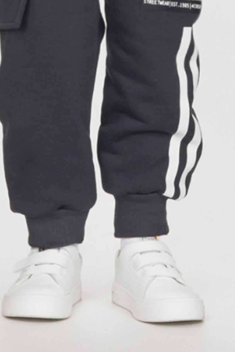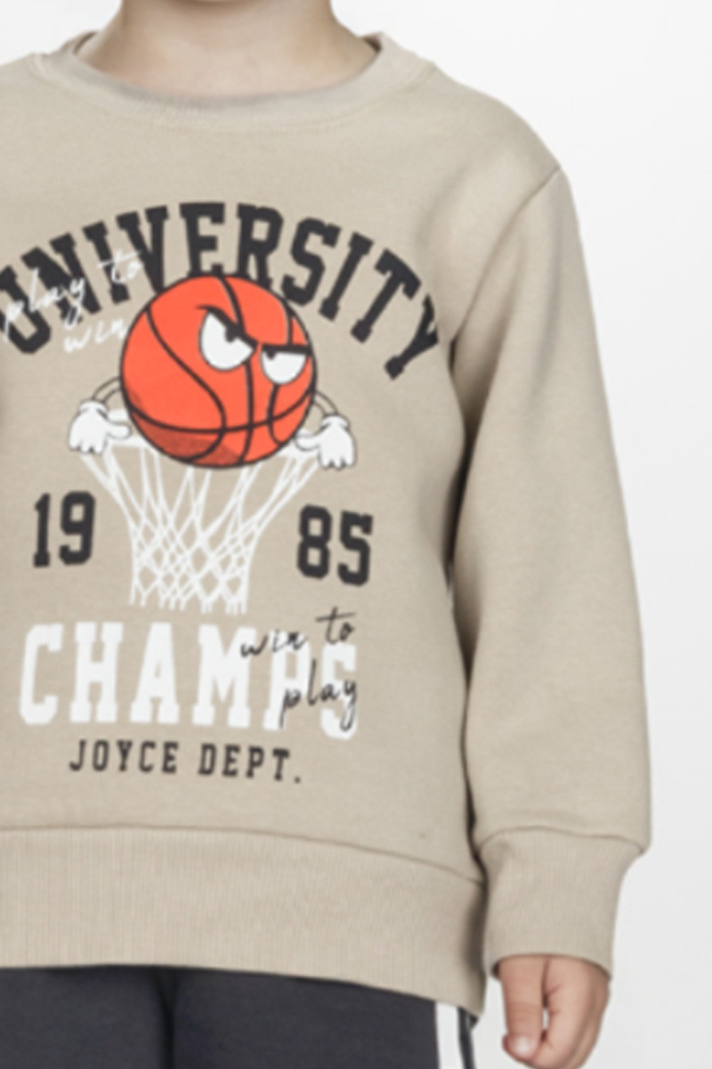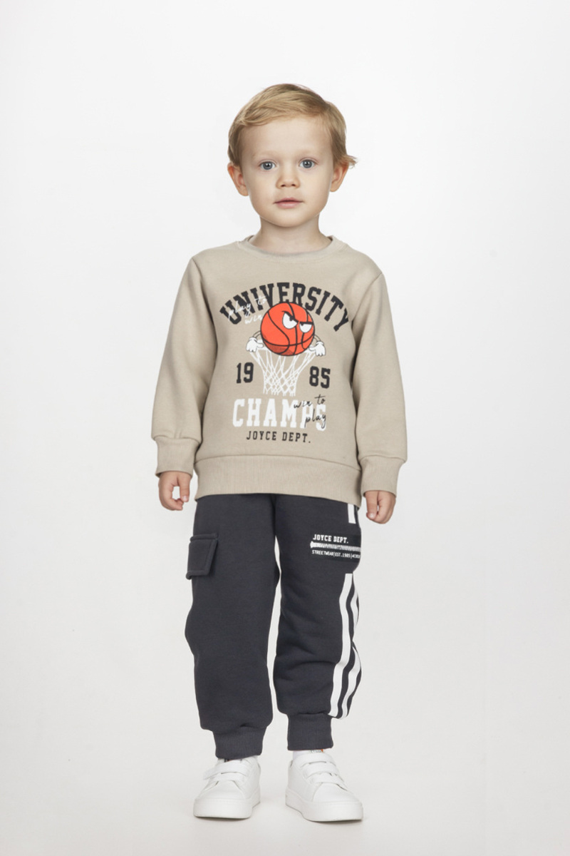 Σετ φόρμας JOYCE, μπλούζα φούτερ σε μπεζ χρώμα με στρογγυλή λαιμόκοψη, ανάγλυφο τύπωμα στο μπροστινό μέρος και παντελόνι φούτερ σε χρώμα ανθρακί με λάστιχο στη μέση και το τελείωμα.