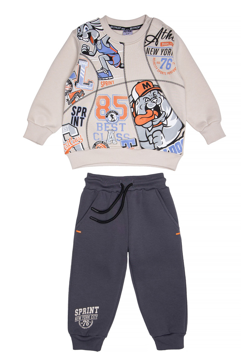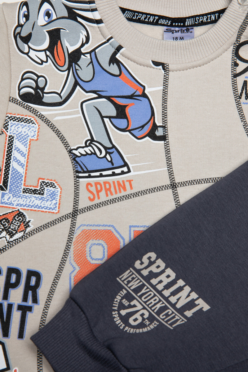 Σετ φόρμας SPRINT, μπλούζα φούτερ με στρογγυλή λαιμόκοψη σε εκρού χρώμα και παντελόνι φούτερ με λάστιχο και ανεξάρτητο εσωτερικό κορδόνι στη μέση σε χρώμα ανθρακί.