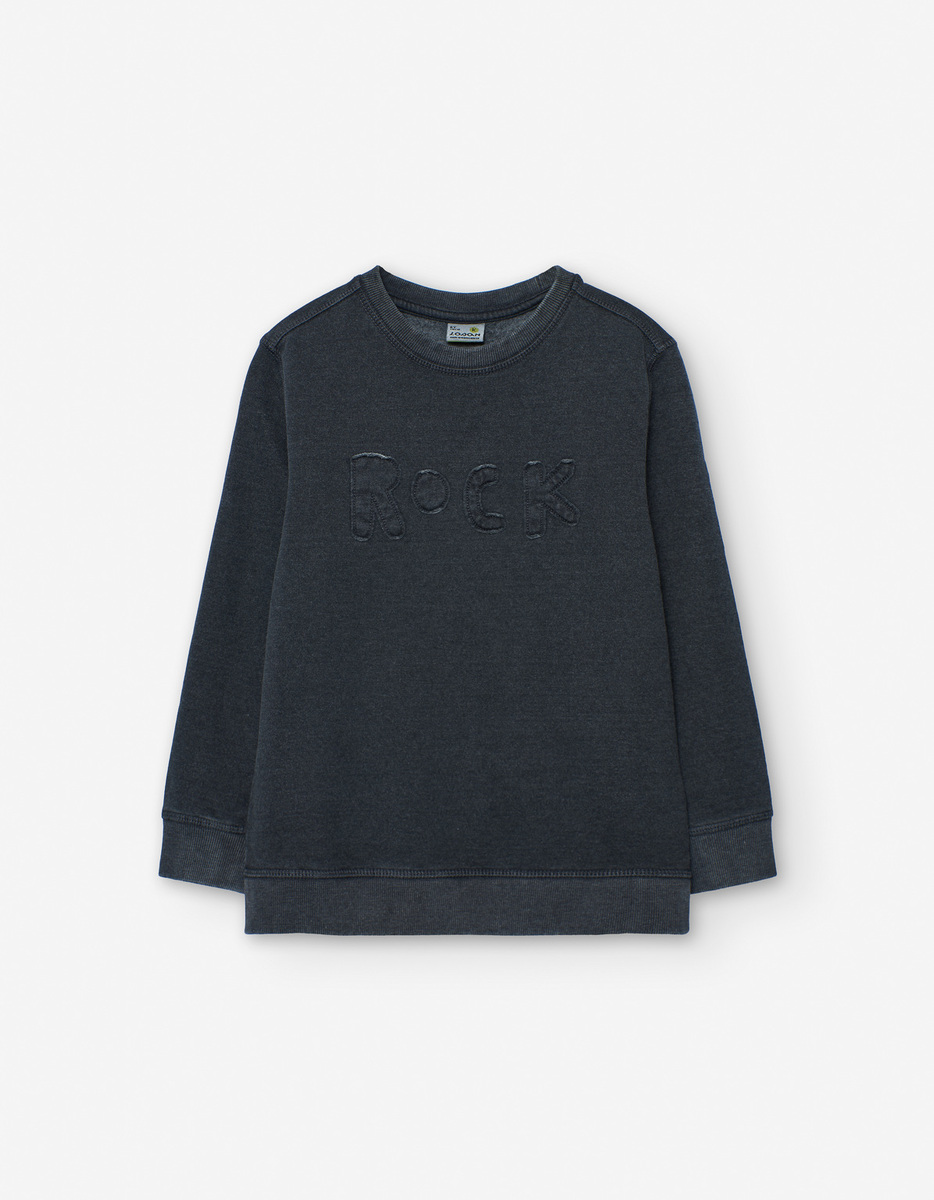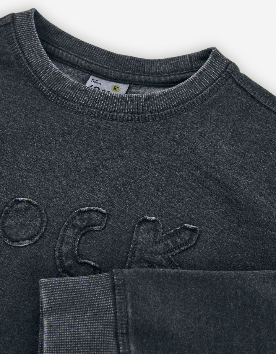 Μπλούζα φούτερ LOSAN σε γκρι σκούρο χρώμα με στρογγυλή λαιμόκοψη, ανάγλυφο λογότυπο και λάστιχο στα μανίκια και το τελείωμα.