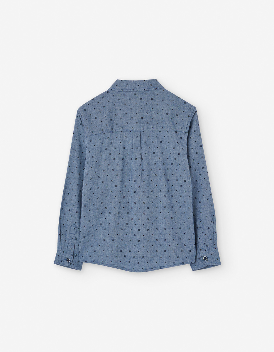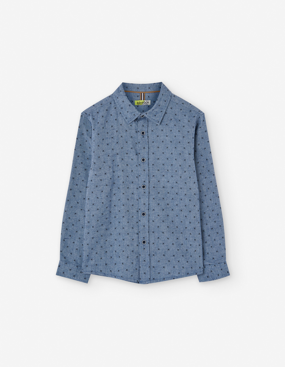 Πουκάμισο LOSAN σε μπλε χρώμα με all over τύπωμα αεροπλάνων, γιακά και κούμπωμα με κουμπιά.