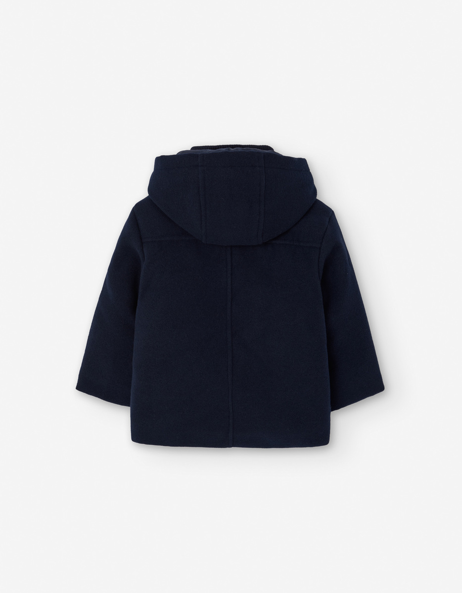 Παλτό LOSAN σε μπλε σκούρο χρώμα με ενσωματωμένη κουκούλα και ψηλό λαιμό.