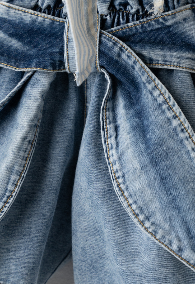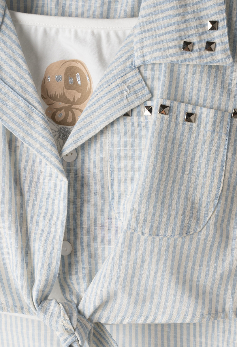 Σετ 3 τεμ. ΕΒΙΤΑ, πουκάμισο με ριγέ σχέδιο, διακοσμητικά τρουκς στον γιακά, μπλούζα σε χρώμα εκρού με τιράντες και σορτς με λάστιχο στη μέση, ενσωματωμένη ζώνη σε χρώμα μπλε ανοιχτό πετροπλυμένο.