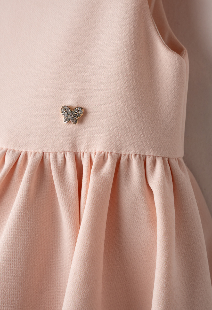 Φόρεμα ΕΒΙΤΑ σε χρώμα ροζ ιδιαίτερες τιράντες με τρισδιάστατα διακοσμητικά λουλούδια, πλισέ τελείωμα και εσωτερική ενίσχυση από τούλι που προσδίδει όγκο και κίνηση. Διαθέτει κλείσιμο με φερμουάρ στο πίσω μέρος