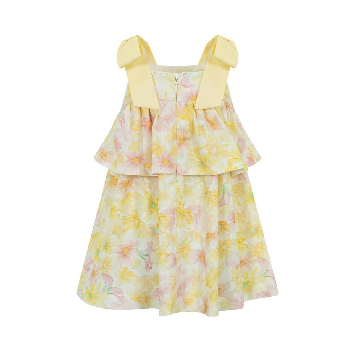 Φόρεμα λινό Lapin House με floral τύπωμα, τιράντες διακοσμημένες με φιόγκο και περιμετρικό βολάν στο πάνω μέρος. Διαθέτει κλείσιμο με φερμουάρ στην πλάτη.