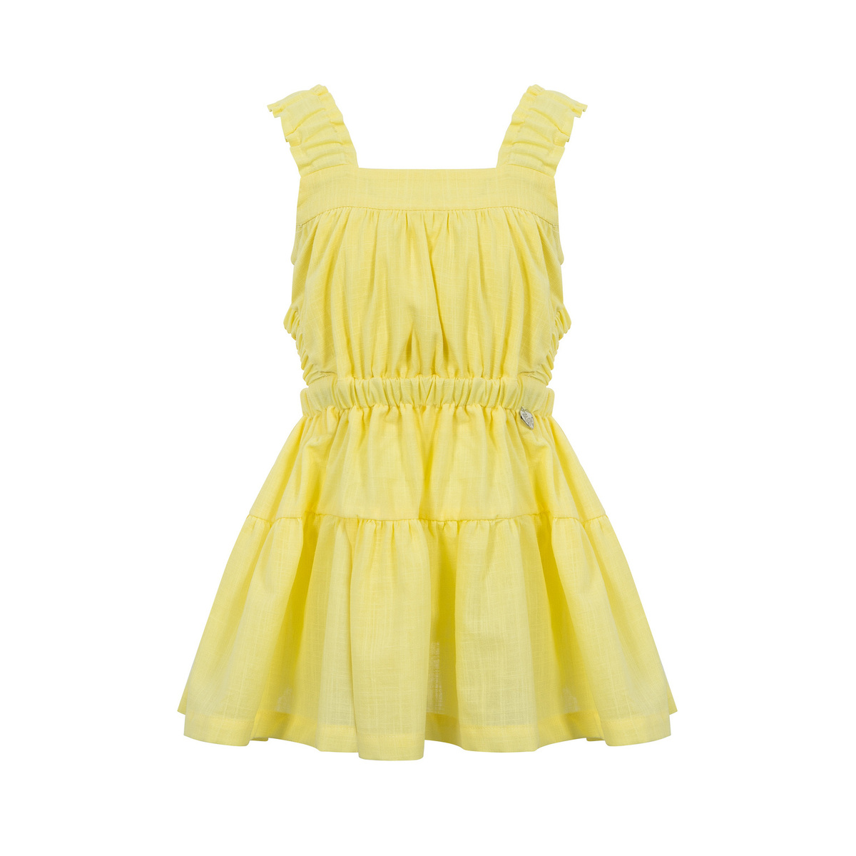 Φόρεμα λινό Lapin House σε χρώμα κίτρινο με ελαστικές τιράντες, ενσωματωμένο λάστιχο στη μέση και ιδιαίτερα κοψίματα στο πλάι.