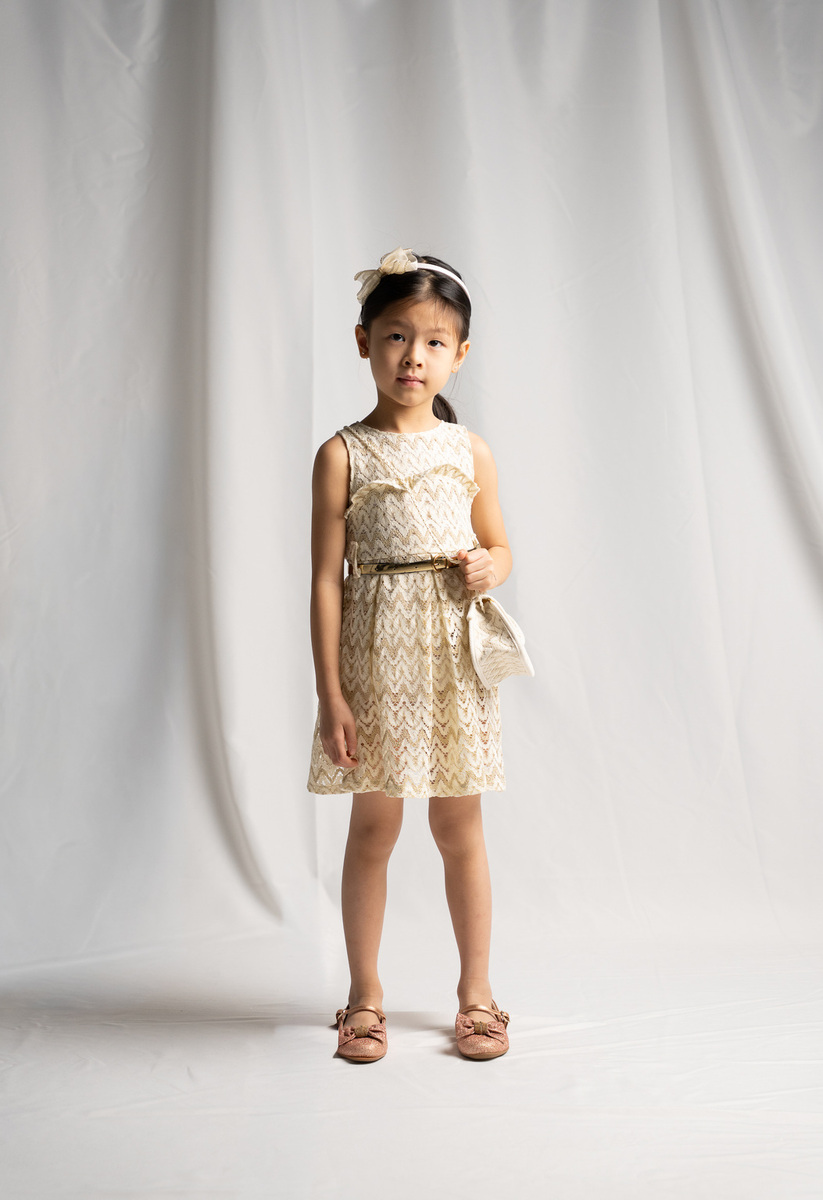 Φόρεμα ΕΒΙΤΑ αμάνικο κεντητό με εσωτερική επένδυση, ενίσχυση από τούλι που προσδίδει όγκο, κλείσιμο με φερμουάρ στο πίσω μέρος σε χρώμα εκρού-μπεζ. Διαθέτει ανεξάρτητη ζώνη μέσης και ασορτί τσαντάκι.
