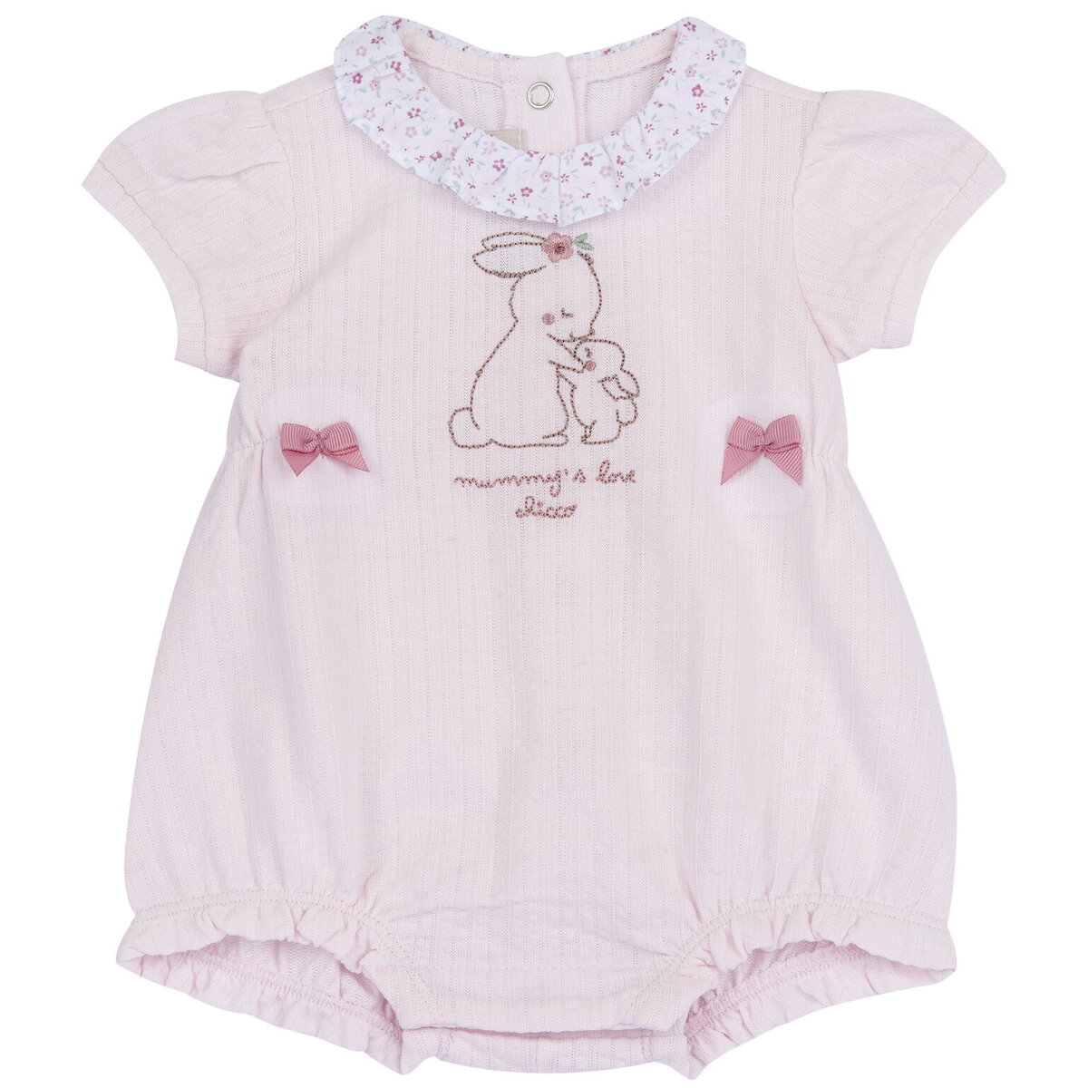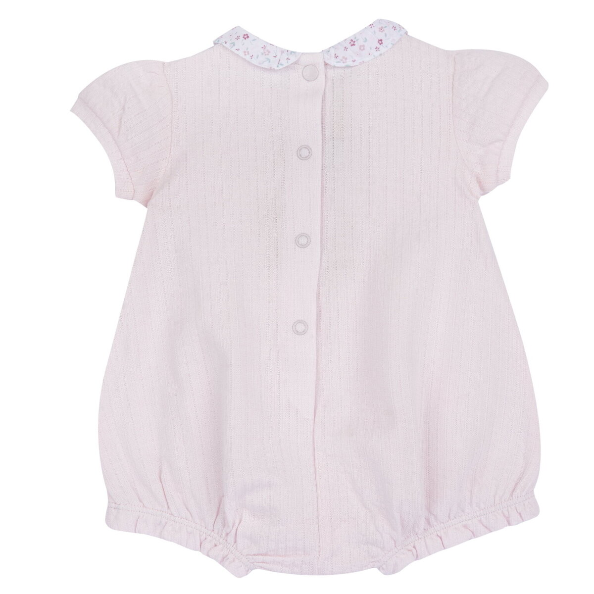 Βαμβακερό φορμάκι CHICCO σε ροζ χρώμα, γιακαδάκι με floral τύπωμα και κεντημένο σχέδιο στο μπροστινό μέρος. Διαθέτει κλείσιμο με κουμπιά-τρουκς στην πλάτη και στο κάτω μέρος.