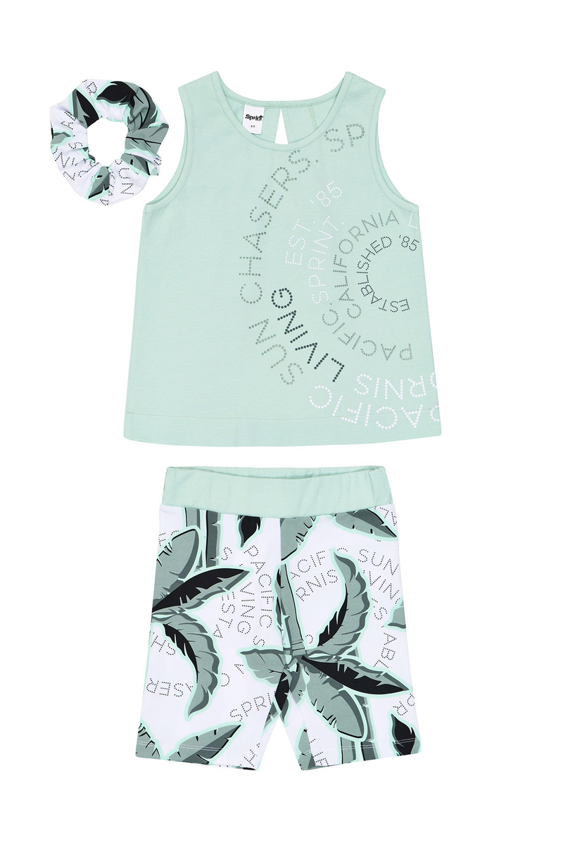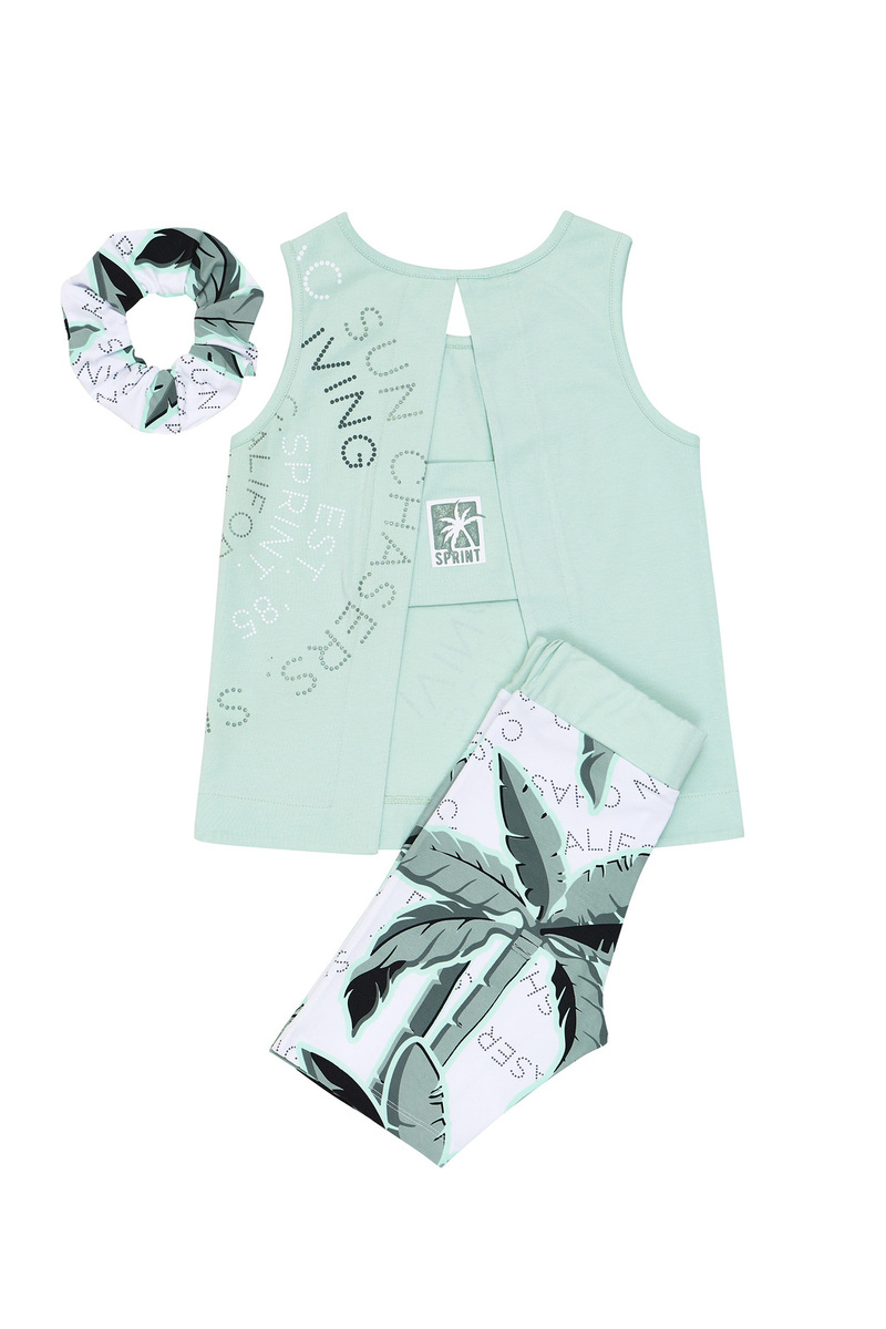 Σετ κολάν SPRINT, μπλούζα αμάνικη σε χρώμα βεραμάν με τύπωμα στο μπροστινό μέρος και ιδιαίτερο σχέδιο στην πλάτη. Κολάν ποδηλατικό εμπριμέ με ασορτί λάστιχο για τα μαλλιά.