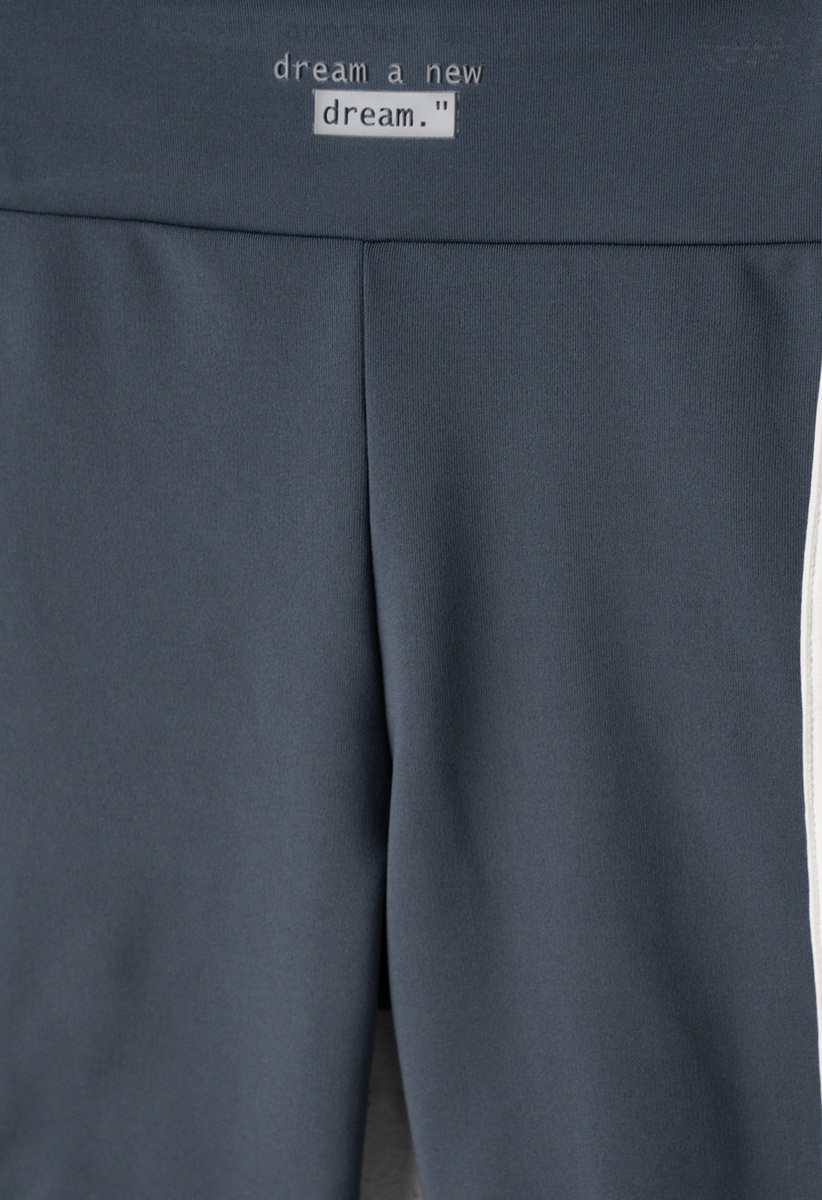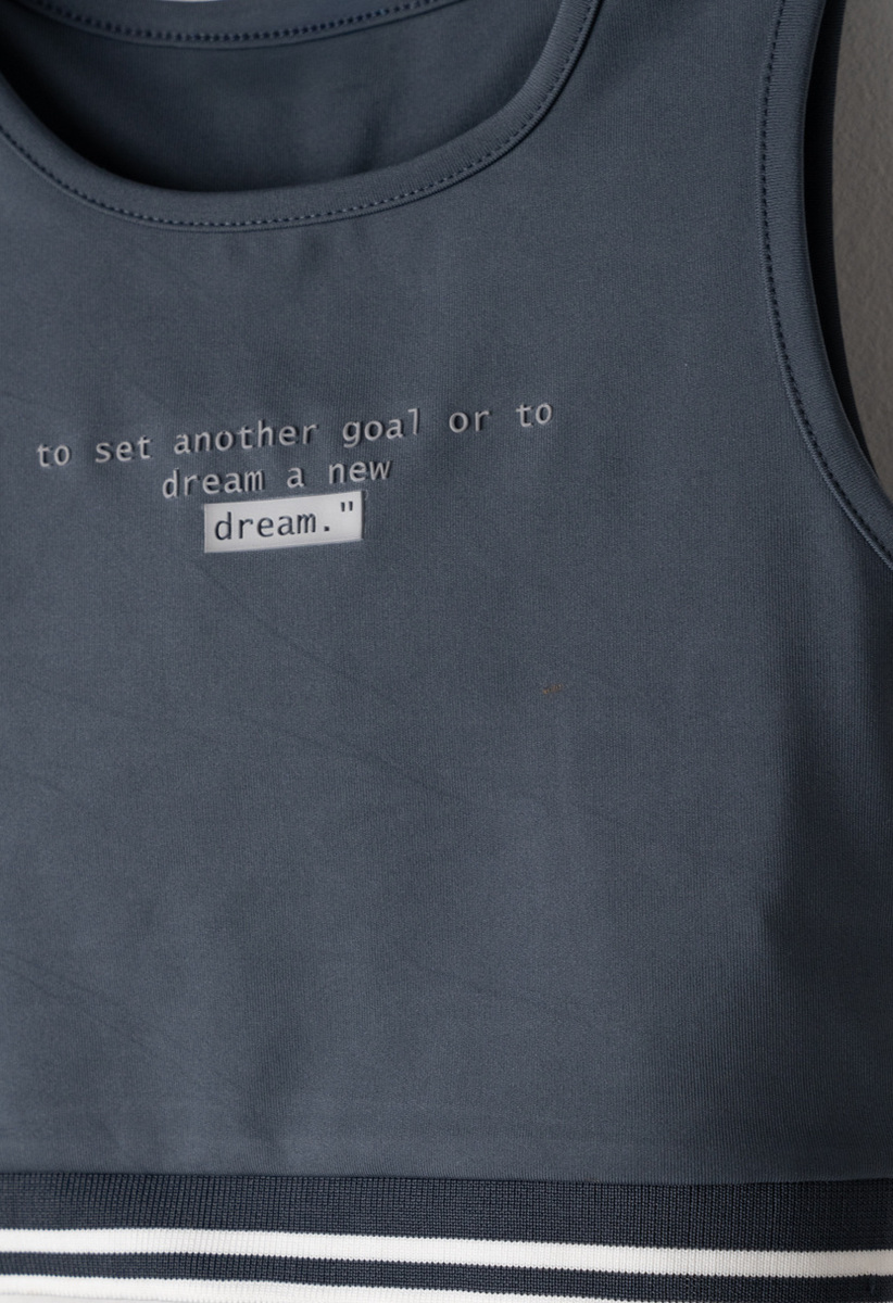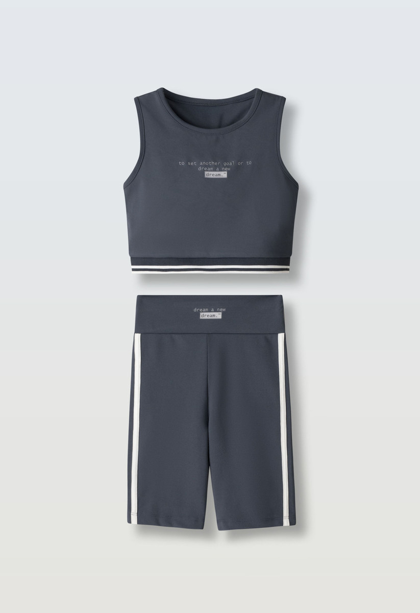 Σετ κολάν ΕΒΙΤΑ, μπλούζα κοντή με ριπ λάστιχο στο κάτω μέρος σε χρώμα γκρι-ανθρακί και κολάν ποδηλατικό με φαρδύ λάστιχο στη μέση.