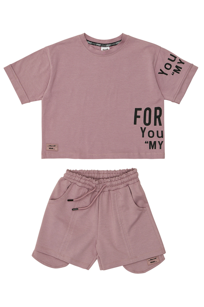 Σετ σορτς SPRINT, μπλούζα με διακριτικό τύπωμα στο πλάι και σορτς με λάστιχο και ρυθμιζόμενο κορδόνι στη μέση σε χρώμα μωβ.