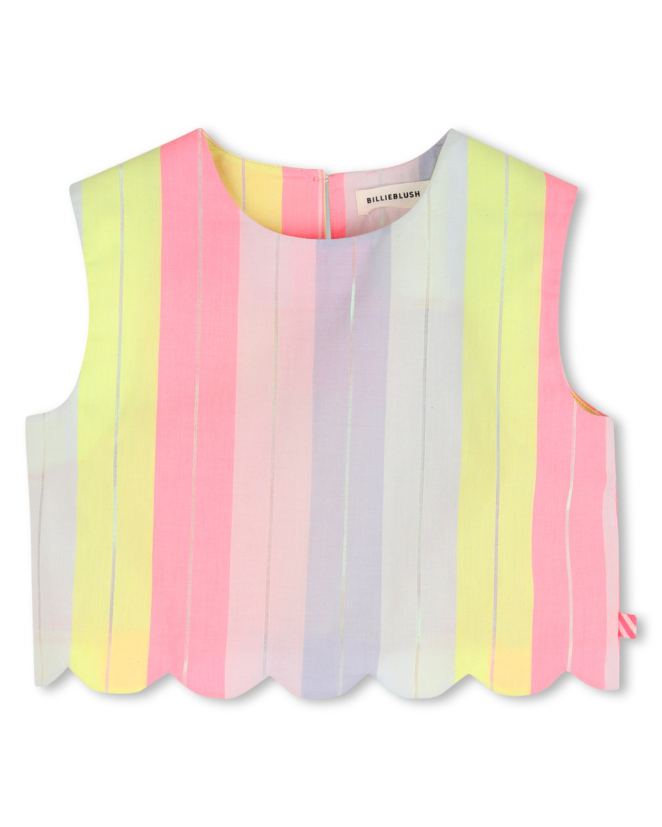 Μπλούζα BILLIEBLUSH αμάνικη, κοντή με ριγέ σχέδιο πολύχρωμη και άνισο τελείωμα. Διαθέτει κλείσιμο με κουμπί στο πίσω μέρος.