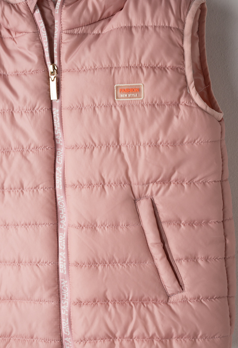 Μπουφάν αμάνικο ΕΒΙΤΑ σε ροζ σκούρο χρώμα με ενσωματωμένη κουκούλα, κούμπωμα με φερμουάρ και δύο εσωτερικές τσέπες στο μπροστινό μέρος.