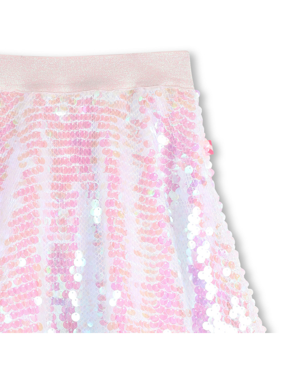 Φούστα BILLIEBLUSH σε χρώμα λευκό, εξωτερική επένδυση τύπου δίχτυ με παγιέτες σε λευκό ιριδίζον χρώμα. Σε άλφα γραμμή, με ιδιαίτερο τελείωμα, με ωραία κίνηση. Διαθέτει λάστιχο στη μέση με γκλίτερ, για άνετη και σταθερή εφαρμογή.
