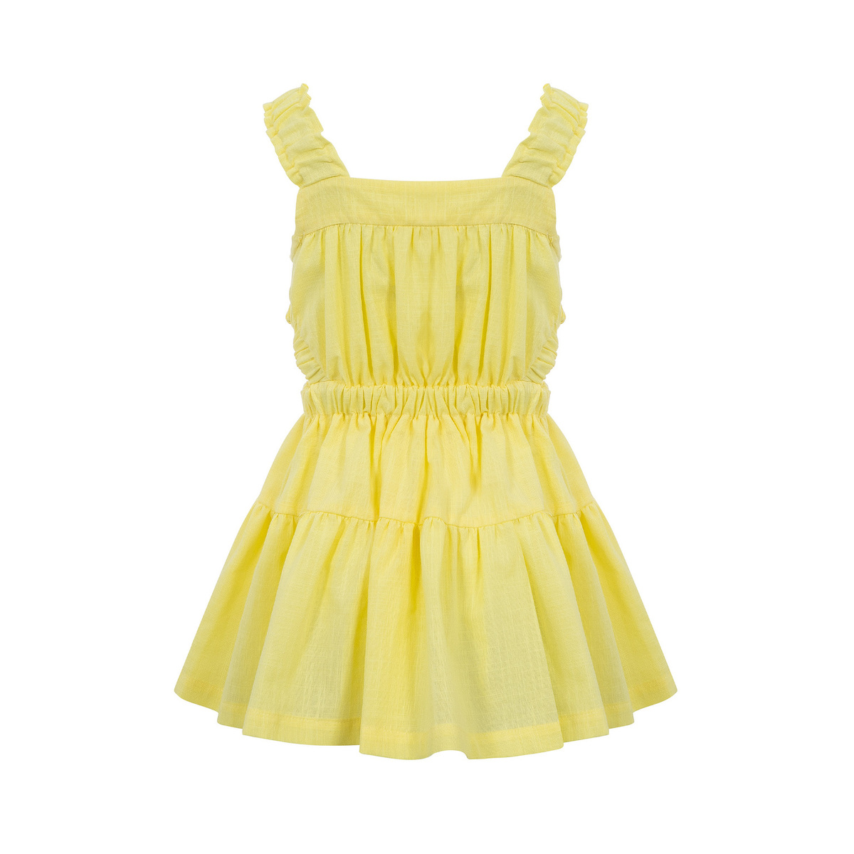Φόρεμα λινό Lapin House σε χρώμα κίτρινο με ελαστικές τιράντες, ενσωματωμένο λάστιχο στη μέση και ιδιαίτερα κοψίματα στο πλάι.