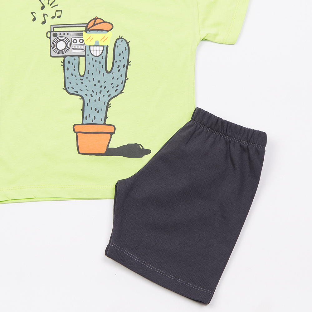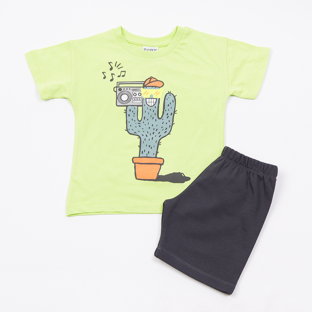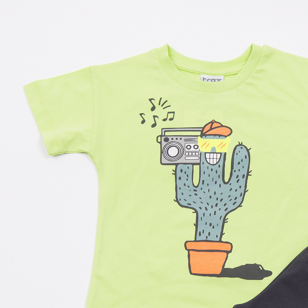 Βαμβακερό σετ TRAX, μπλούζα σε λάιμ χρώμα με τύπωμα στο μπροστινό μέρος και βερμούδα με λάστιχο στη μέση σε χρώμα ανθρακί.