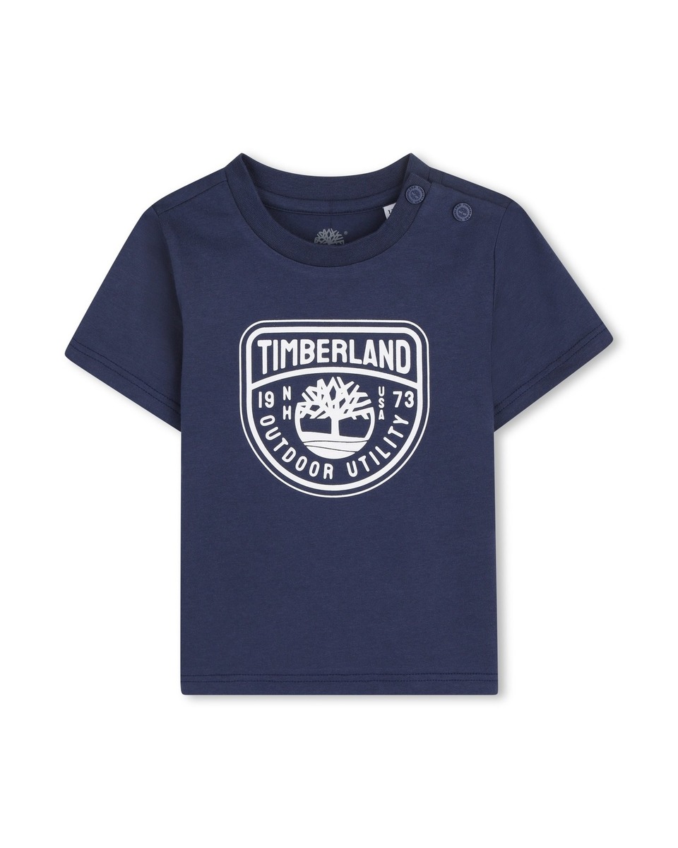 Μπλούζα βαμβακερή TIMBERLAND σε μπλε σκούρο χρώμα με τύπωμα στο μπροστινό μέρος το λογότυπο, διαθέτει στρογγυλή λαιμόκοψη και κουμπιά στο πλάι για εύκολη εφαρμογή.