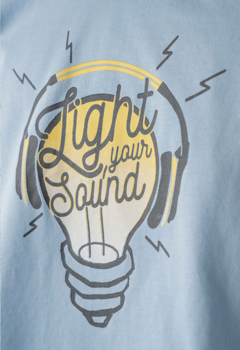 Σετ 2 τεμ. HASHTAG, κοντομάνικη βαμβακερή μπλούζα σε χρώμα σιέλ με τύπωμα στο μπροστινό μέρος, βερμούδα τζιν με λάστιχο στη μέση και πλαινές τσέπες τύπου cargo.