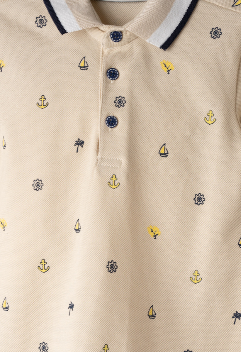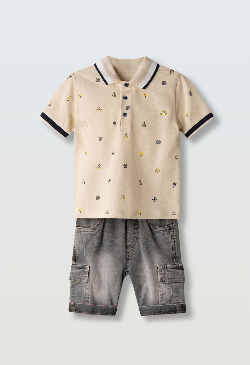 Σετ τζιν βερμούδα HASHTAG, μπλούζα πικέ polo σε χρώμα εκρόυ με all-over τύπωμα και βερμούδα τζιν με τσέπες τύπου cargo σε χρώμα γκρι. Διαθέτει εσωτερικό ρυθμιζόμενο λάστιχο στη μέση.