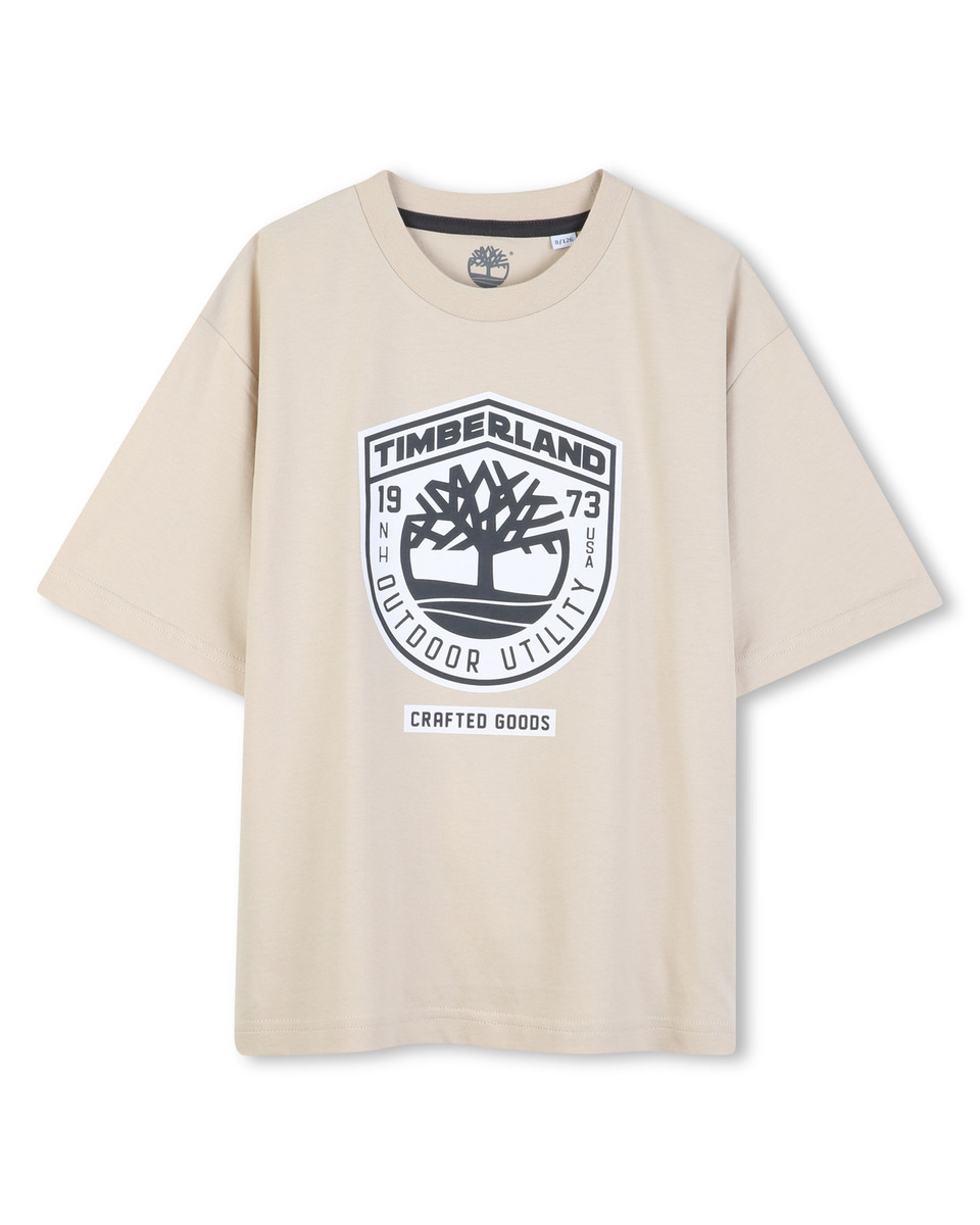 Βαμβακερή T-shirt TIMBERLAND σε χρώμα μπεζ, με τύπωμα λογότυπο στο μπροστινό μέρος και το δέντρο της ζωής διαθέτει στρογγυλή λαιμόκοψη και άνετη εφαρμογή.