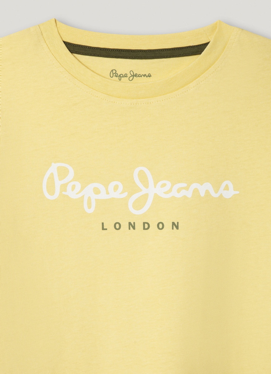 Μπλούζα βαμβακερή Pepe Jeans με κοντό μανίκι, τύπωμα στο μπροστινό μέρος σε κίτρινο χρώμα.