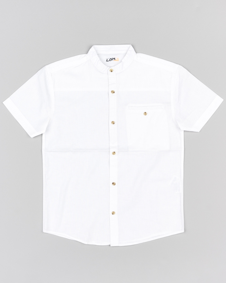 Πουκάμισο λινό LOSAN σε λευκό χρώμα με μάο λαιμόκοψη και κούμπωμα με κουμπιά.