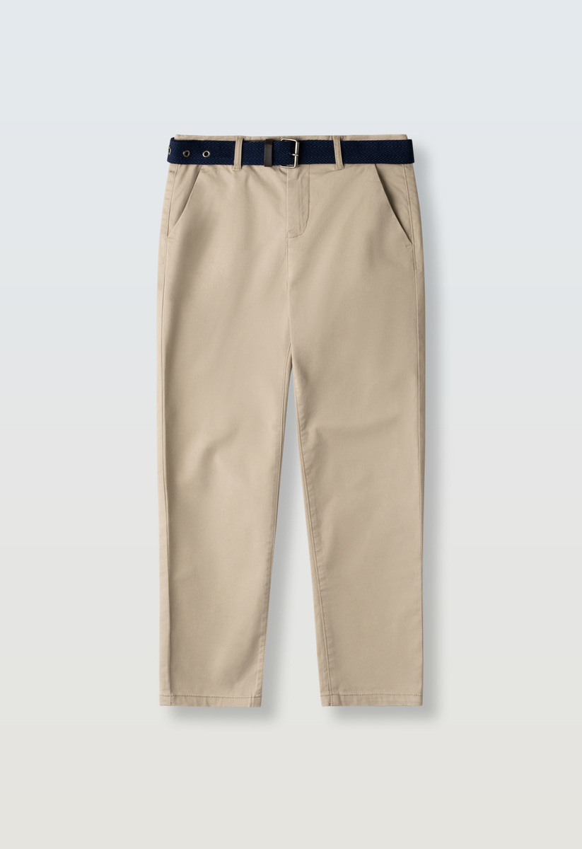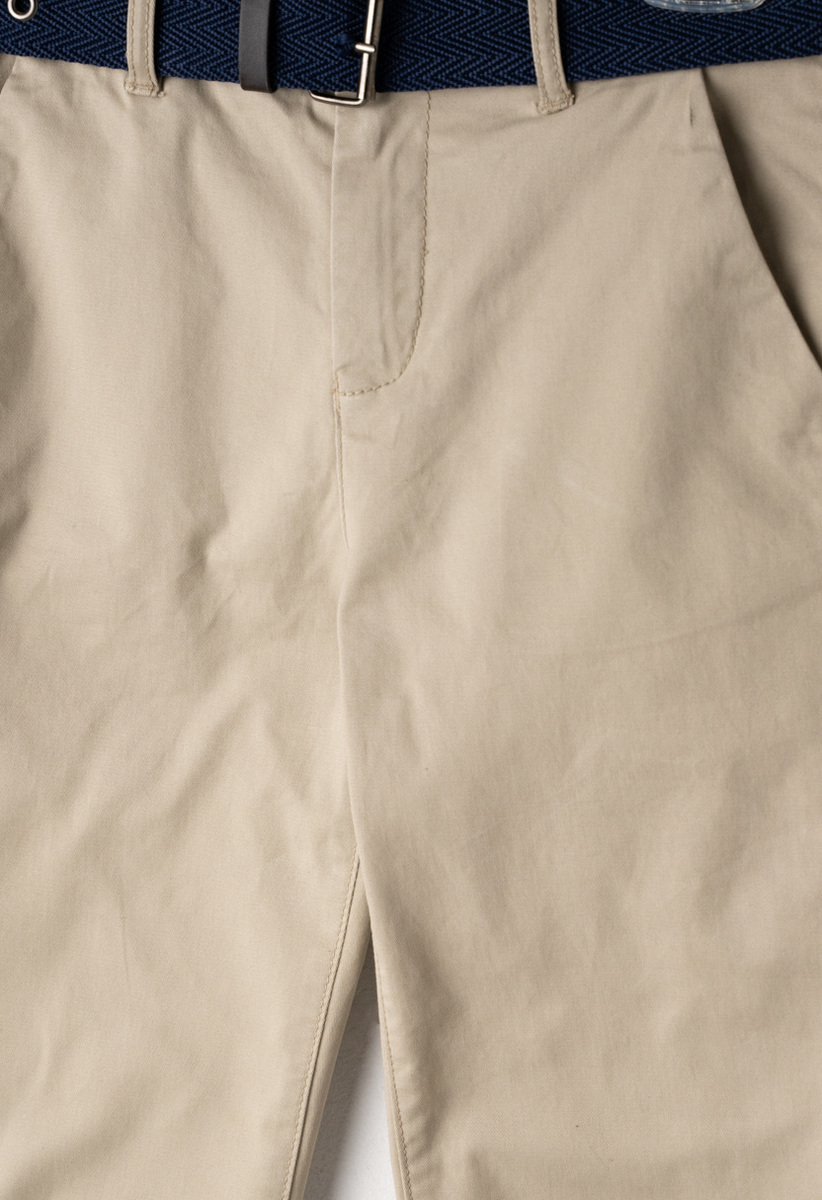 Παντελόνι υφασμάτινο HASHTAG σε μπεζ χρώμα με εσωτερικό ρυθμιζόμενο λάστιχο, κούμπωμα με κουμπί και φερμουάρ. Διαθέτει ασορτί αποσπώμενη ζώνη.